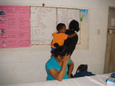 ・ 9:00 Kolovai Health Center で母子保健活動を行う、母子への口腔衛生指導、歯科検診(約60名)、フッ化物塗布(90名)実施、 デンタルセラピストのSaloteもフッ化物塗布の実技訓練する。