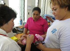 喫煙、飲酒アンケートにおいて、予想していたよりも喫煙、飲酒をする人が少なかった。特に女性はどちらもしない人が多い。男性はアルコールを摂取しない人でも、ほとんどの人がKAVAを飲む事がわかった。Tonga人の習慣になっている事を再認識。10代の喫煙者もおり、そのほとんどは16歳以前から喫煙を始めている。アンケートは、セラピストが積極的に行った為、予想以上にデータを収集する事ができた。それは、次期プロジェクトの事前調査として大きい成果である。 |