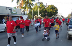 AM7:00〜7:45にパトカーが先導しヌクアロファホテル前からフィッシュマーケットまで歩いた。主に歯科スタッフとその家族の参加であった。歯科スタッフの中には軽々歩く人もいれば、汗だくになって歩いている人もいた。激しい運動ではないので全員完歩でき、トンガヘルススタッフによるクールダウンストレッチ体操後、笑顔で解散した。
